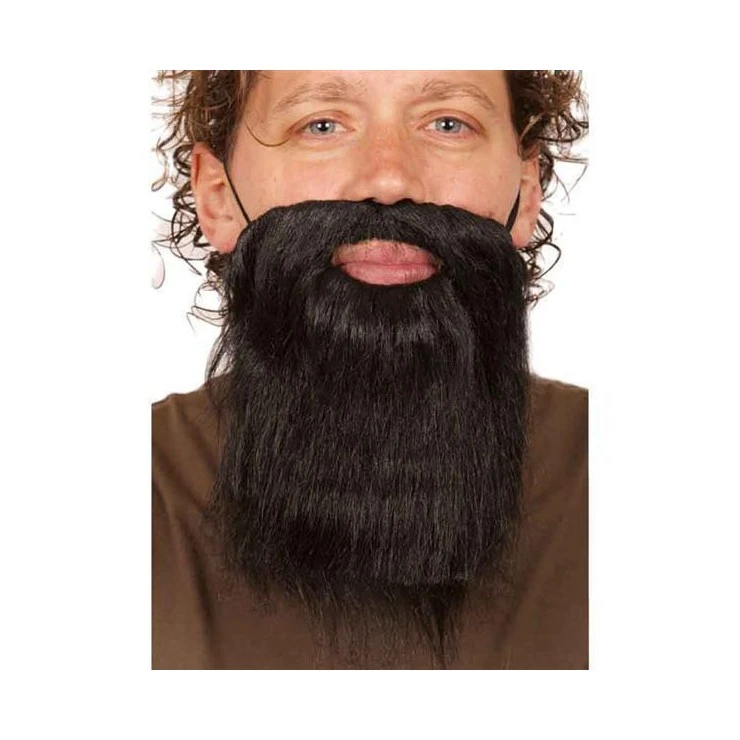 Cette barbe noire se maintient grâce à un élastique.