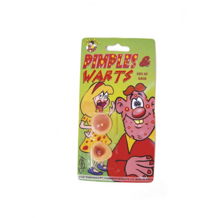 Bouton et verrue factices, à se coller sur le visage, pour un effet impressionnant !