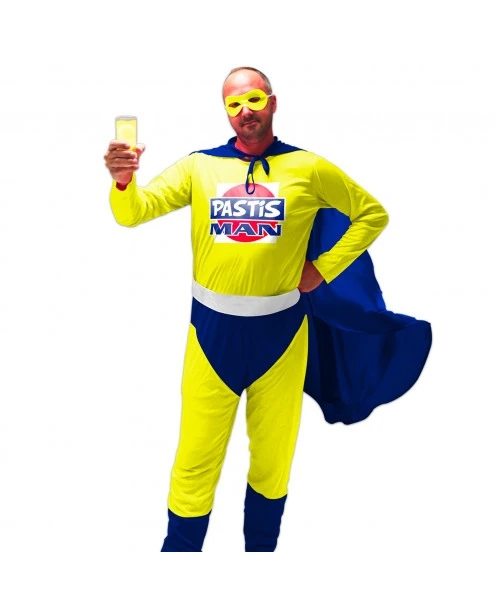 -COSTUME PASTIS MAN. Costume taille adulte. Drôles et 100% original. Nos costumes conviennent à toutes les fêtes, anniversaire, EVG, EVJF, mariage, feria, fêtes votives, festival. Taille unique extensible qui correspond à toutes les tailles.