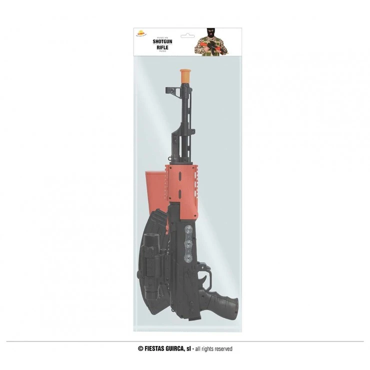 Cette fausse Kalachnikov réalisée en plastique mesure environ 68cm.
