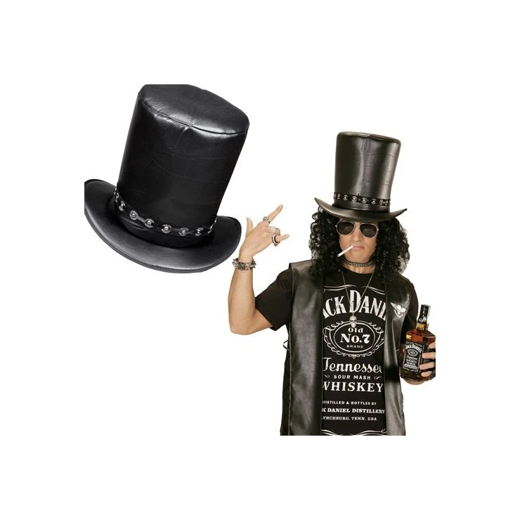 Grand haut de forme simili cuir de guitariste rock des années 80.