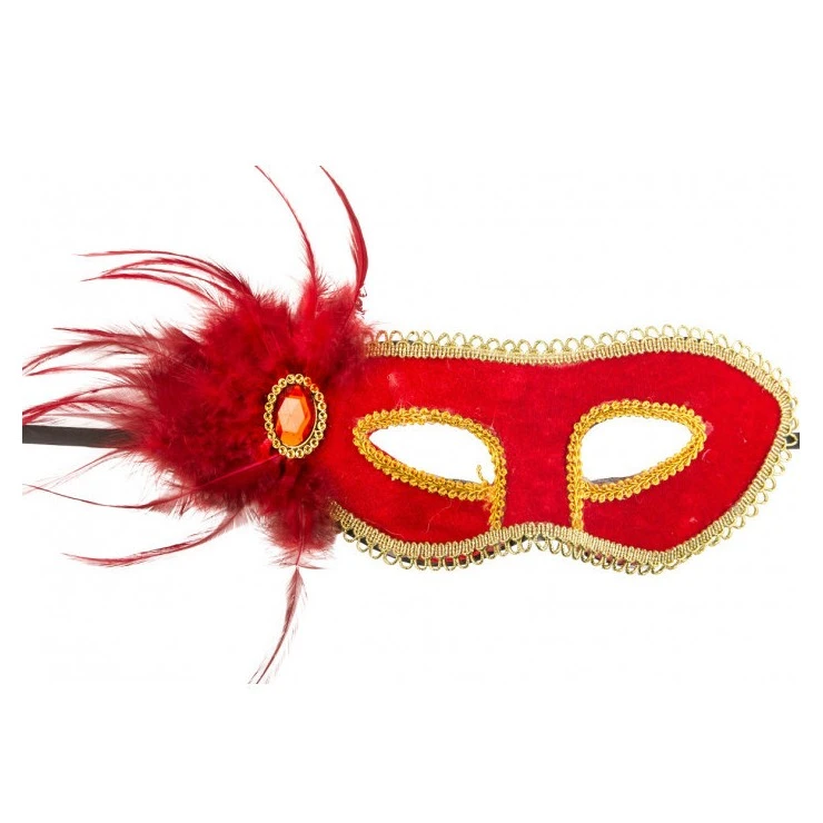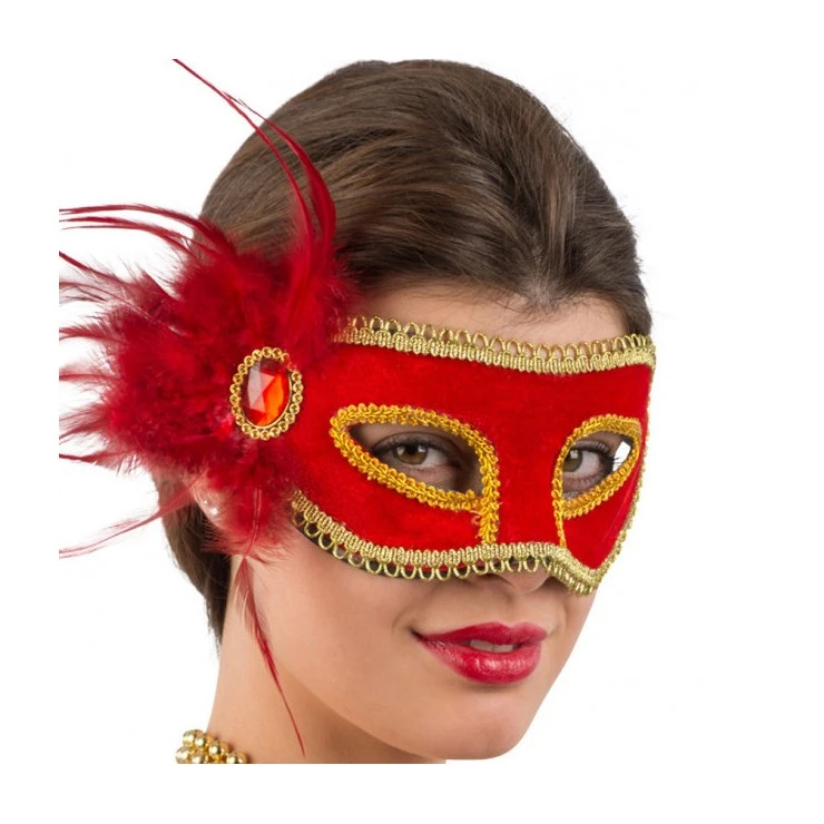 Ce loup réalisé sur une base en plastique est recouvert de velours rouge.