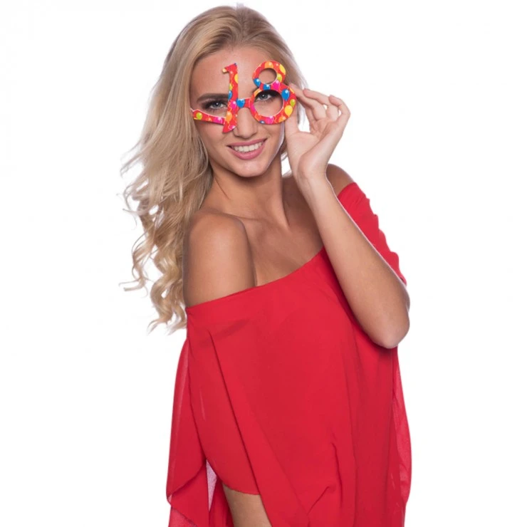 Ces lunettes multicolores avec imprimés ballons et inscription 18 seront parfaites pour un anniversaire.