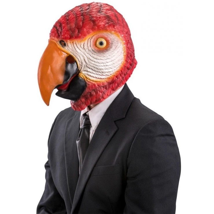 Deux trous sur les côtés du bec permettent de voir au travers de ce grand masque qui recouvre toute la tête.